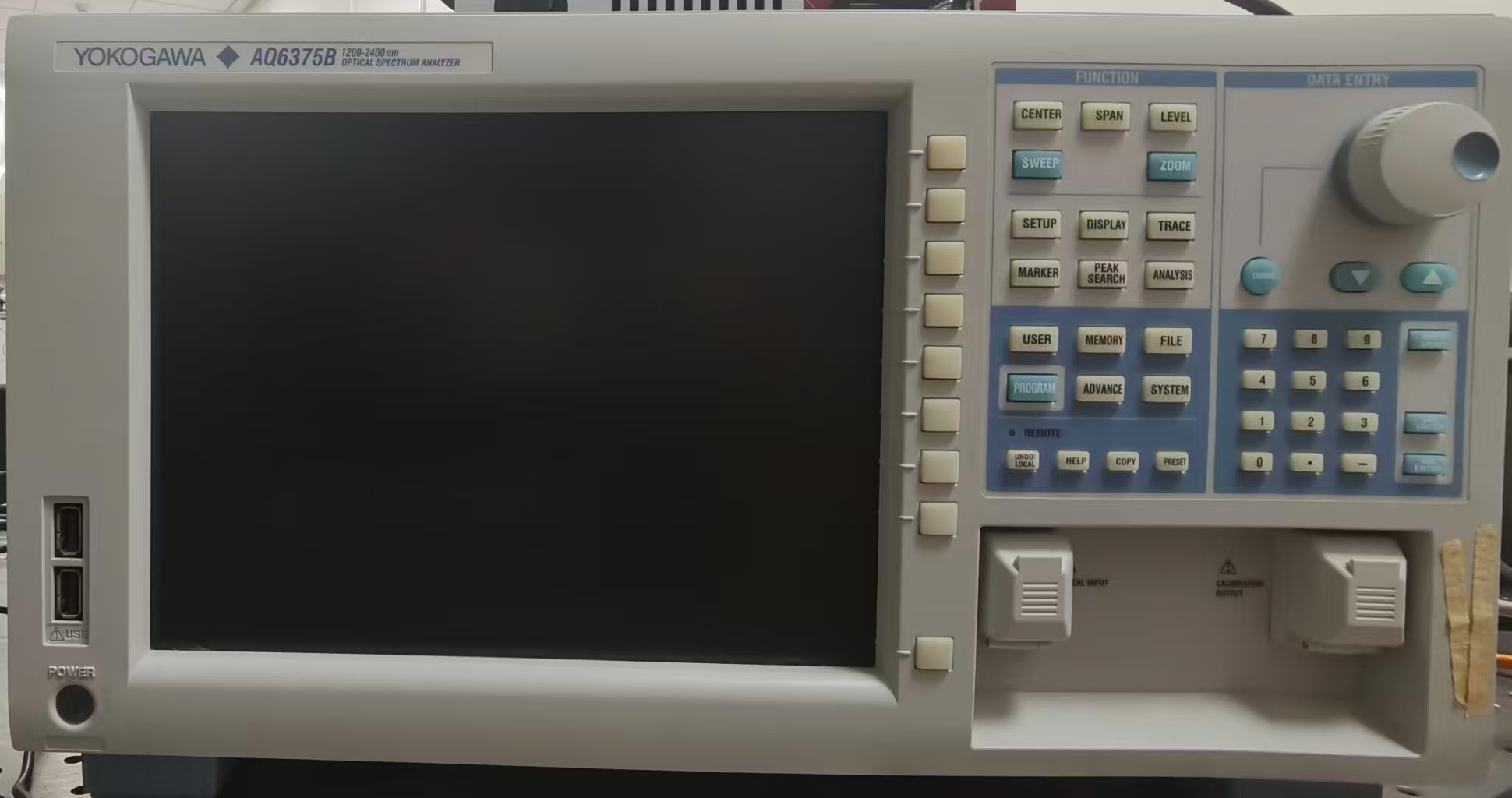 AQ6375B是横河生产的高性能光谱分析仪(OSA)。其波长覆盖范围宽,从1200 nm至2400 nm;专为近红外至短波红外波段设计,尤其适用于光纤通信(如O波段至L波段)、光纤传感及激光器的光谱表征。该仪器具备高波长分辨率、高动态范围和高灵敏度。其触摸屏操作直观,支持多种分析功能,是用于精确光谱测量的关键工具。